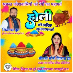 बांकीमोंगरा। होली पर्व की पूर्व संध्या पर नगर पालिका परिषद बांकीमोंगरा की अध्यक्ष सोनी विकास झा ने वार्ड क्रमांक 4 एवं वार्ड क्रमांक 11 के नागरिकों को विशेष सौगात देते हुए हाईमास्ट लाइट का लोकार्पण किया।