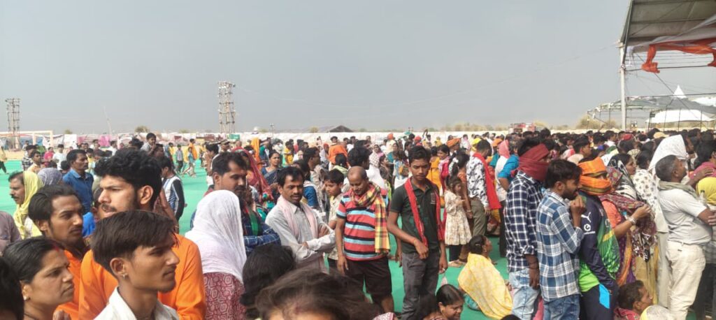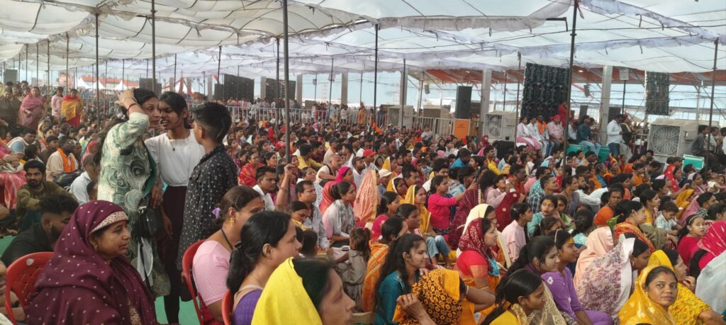 दिनभर चली धूलभरी आंधी और कथा समाप्ति से पहले हुई बारिश के बावजूद श्रद्धालु कथा स्थल पर डटे रहे। यह नज़ारा भक्तों की अटूट आस्था को दर्शाता है।